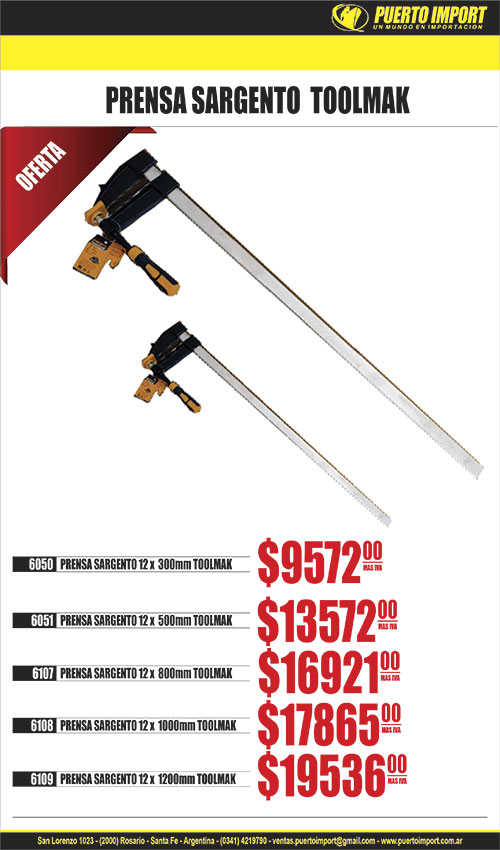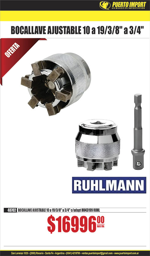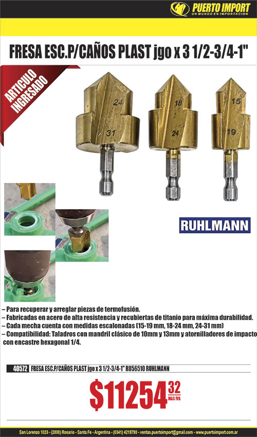 ![]() ![]() INSERTO C/ACCSESORIOS jgo 15 pcs RUHLMANN 21230 INSERTO M12 x 1 x 15 pcs RU43018 21255 INSERTO M 6 x 1 RU43021 21258 INSERTO M 7 x 1 RU43030 21260 INSERTO M10 x 1 RU43031 21256 INSERTO M10 x 1.25 RU43025 21261 INSERTO M10 x 1.5 RU43023 21257 INSERTO M12 x 1.25 RU43026 RUHLMAN![]() ![]() 40415 ACC.TORNOx 418 piezas RU8543 RUHLMANN![]() 14484 ANAFE ELECTRICO 1 HORNALLA c/reg y corte blanco 1000W GLOSS![]() 14445 ANAFE ELECTRICO 2 HORNALLAS c/reg y corte negro 2000W GLOSS![]() 33695 BOCALLAVE jgo E.1/4 y 1/2mm 108 pcs 32mm![]() ![]() 40420 BOMBA TRASVA. COMBUSTIBLE Y OTROS + INFLADOR RU12007 RUHLMAN![]() CABLES DE ARRANQUE P/BATERIA AUTO ROJO Y NEGRO 17042 1000 AMP![]() ![]() 40568 CALIBRE P/ROSCAS MM - SAE RU47100 RUHLMAN![]() CANDADO ACERO CROMADO ARO LARGO DOB.TRABA LLAVE COMP. 16693 30mm 16694 40mm 16695 50mm 16696 60mm ![]() 24505 CINTA EMPAQUE 48mm x 100m TRANSPARENTE AMARILLA BRACO![]() 28970 DESTORNILLADOR CONO x 16 pcs![]() ![]() 40302 DISCO MUELA PLANO MADERA 115mm RU15392 RUHLMANN![]() ![]() ELECTRODO PUNTA AZUL 6013 BRACO 11309 2 mm x 5 kg PUNTA AZUL 6013 BRACO11310 2.5 mm x 5 kg PUNTA AZUL 6013 BRACO11311 3.25 mm x 5 kg PUNTA AZUL 6013 BRACO![]() ![]() 40608 ESCUADRA MULTIFUNCION ACERO INOXIDABLE RU51053 RUHLMANN![]() ![]() 40440 EXTRACTOR DE POLEAS/ENGRANAJES/COJINETES x 10pz RU43166 RUHL![]() ![]() 40450 EXTRACTOR DE RODAM.DEZLIZABLE UNIV. x 13pz RU43159 RUHLMANN![]() ![]() 40583 EXTRACTOR DE ROTULAS CAMIONETA 4x4/4x2 10 pcs RU43133 RUHLMA![]() ![]() FRESADORA AVELLANADORA RUHLMANN 40630 8 x 8 x 2.8mm RU56556 40631 8 x 8 x 3.5mm RU56557 40632 8 x 8 x 4mm RU56558 40633 8 x 10 x 2.8mm RU56559 40634 8 x 10 x 3.5mm RU56560 40635 8 x 10 x 4.0mm RU56561 ![]() ![]() INSERTO RUHLMANN 21226 M 8 x 1 x 25 pcs RU43064 21270 M 8 x 1.25 x 25 pcs RU43054 21228 M10 x 1 x 25 pcs RU43055 21229 M10 x 1.25 x 25 pcs RU43056 21271 M10 x 1.5 x 25 pcs RU43057 21272 M11 x 1.5 x 25 pcs RU43067 21273 M12 x 1.25 x 15 pcs RU43058 21274 M12 x 1.50 x 15 pcs RU43059 21275 M12 x 1.75 x 15 pcs RU43060 21276 M14 x 1.25 x 5 pcs RU43061 21277 M14 x 1.50 x 5 pcs RU43072 21278 M16 x 1.50 x 5 pcs RU43040 ![]() LISTON C/CINTA LED LD ENCASTRABLE 35502 8W T5 400mm 35503 8W T5 600mm 35501 9W T8 600mm ![]() ![]() 40361 LLAVE DE EXTENSION 15" + 3 ADAPT RU43016 RUHLMANN![]() ![]() 40306 MANDRIL ACODADO 90¦ 10mm P/TALAD.C/MANILLAR RU12000 RUHLMANN![]() ![]() 10036 MECHA AC.RAP.IND JGO x 5 pcs 4/5/6/8/10 mm TOOLMAK![]() ![]() 40603 MECHA MULTIMATERIAL 4 CORTES jgox5 5-6-8-10-12 RU56009 RUHL![]() ![]() MECHA WIDIA SDS PLUS TOOLMAK 32692 8x210mm 32693 10x160mm 32694 10x210mm 32697 10x450mm 32695 12x210mm 32696 12x260mm ![]() ![]() 40312 PICO ACCOPLE GRASERA ENC 1/8 NPT RU13000 RUHLMANN![]() ![]() 40341 PINZA ALICATE CURVA NYLON P/MANGUERA x 3pcs RU43756 RUHLMAN![]() 9330 PINZA CRIMPIADORA TELEFONIA + PELACABLE![]() ![]() 40131 PINZA SACAABRAZADERAS RECTA RU37005 RUHLMANN![]() ![]() 40380 PROBADOR DE FUGAS DE RADIADOR x 33 pcs RU43757 RUHLMAN![]() ![]() RUEDA P/CORTACERAMICO LAPIZ T/RUBI RUHLMANN 40434 8mm RU14004 40435 10mm RU14005 ![]() ![]() 40428 SOGA REMOLQUE CABLE ACERO 8mm x 4m RU38160 RUHLMANN![]() 6939 TAPON TERMO AC.MACHO T/STANLEY PICO SEBADOR![]() TUBO LED PORTATIL RECARGABLE LD 15741 52cm | ![]() ![]() 40399 ACC.TORNO CEPILLOS INOX/BRONCE/NYLON 18 PCS RU8540 RUHLMANN![]() ![]() 40045 ACC.TORNO VASTAGO Y LIJAS BANDA x 102 pcs RU8533 RUHLMANN![]() ![]() 40314 ALARGUE AMOLADORA MANO 140mm M14 RU8561 RUHLMANN![]() 14486 ANAFE ELECTRICO 1 HORNALLA c/reg y corte negro 1000W GLOSS![]() ![]() BISELADOR C/TOPE FLOTANTE RUHLMAN 40645 8 x 8 x 3 RU56550 40646 8 x 8 x 3.5 RU56551 40647 8 x 8 x 4 RU56552 40648 8 x 10 x 3 RU56553 40649 8 x 10 x 3.5 RU56554 40650 8 x 10 x 4 RU56555 ![]() ![]() BUSCAPOLO TOOLMAK 14450 CHICO 14451 GRANDE ![]() ![]() 15250 CALIBRE FIBRA 150mm TOOLMARK![]() CANDADO ACERO CROMADO ANTIBANDALICO LLAVE COMP. 16673 40mm 16679 50mm 16680 60mm 16681 70mm ![]() ![]() CINTA ALUMINIO 4.8 x 0.03mm BRACO 24508 50 m ![]() ![]() 10249 CUTTER H/TRAPEZOIDAL PLEGABLE TOOLMAK![]() ![]() 40008 DISCO DIAMANT.PORCELANATO SUPER TRF TURBO 4 1/2" RU15359 RUH![]() ![]() 40444 EJE FLEXIBLE 1/4" x 300mm C/ACOPLE RAP. MAGNETICO RU6958 RUL![]() ![]() ESCOFINA MADERA P/AMOLADORA RUHLMANN 40602 M14 x 25mm RU15376 ![]() ![]() 40320 EXTRACTOR DE POLEAS DE AMORTIGUADOR KIT RU43165 RUHLMANN![]() ![]() EXTRACTOR DE RODAM. T/CEPO RUHLMANN 40330 30 x 50 RU16035 40331 35 x 75 RU16036 ![]() ![]() 40618 EXTRACTOR DE ROSCAS ROTAS 1/2-3/4" RU16014 RUHLMANN![]() ![]() 7184 FILTRO P/SOPAPA DE BACHA acero inox. x 3 pcs GIMP![]() ![]() GUANTE MULTIP. MULTIFLEX WARM LATEX FOAM DV9 P/FRIO 21732 T10 STE21730 T8 STEEL21731 T9 STEE![]() ![]() 40205 KIT ADAPT. AMOLADORA 4 1/2" A MULTICORTE RU25503 RUHLMANN.![]() ![]() 40310 LINTERNA INSPECCION RECARG 3W USB 12 hs PLEGAB. RU26700 RUHL![]() ![]() 40412 LLAVE CRIQUET 1/2" CURVA c/expulsor RU30850 RUHLMANN![]() ![]() 40360 LLAVE POLI V 8-10/11-13/14-15/16-17/18-19 5pcs RU43015 RUHLM![]() ![]() 10037 MECHA AC.RAP.IND JGO x 13 pcs 1.5 a 6.5 mm TOOLMAK![]() ![]() 40585 MECHA DIAMANT.COPA P/AMOLADORA 30mm RU58028 RUHLMANN![]() ![]() MECHA WIDIA TOOLMAK 29195 5mm 29205 8 x 400mm 29206 10 x 400mm 29198 10mm 29207 12 x 400mm 29199 12mm ![]() ![]() 40224 MINI EXTRACTOR LIMPIAPARABRIZAS Y COJINETE RU16047 RUHLMANN![]() 14408 PICO INFLADOR DE NEUMATICOS P/COMPRESOR GOMERIA![]() ![]() 40340 PINZA ALICATE RECTO NYLON P/MANGUERA x 3pcs RU43755 RUHLMAN![]() ![]() 40130 PINZA SACAABRAZADERAS FLEXIBLE RU37001 RUHLMANN![]() ![]() 40636 PLANTILLA COPIADORA ROSCAS/TORNILLOS/TUERCAS RU37102 RUHLMAN![]() ![]() 14939 RODILLERA GOMA ANTIDESLIZANDE PROFESIONAL x 2 TOOLMAK![]() ![]() 40639 SERRUCHO JAPONES DOBLE FILO 270mm RU49101 RUHLMANN![]() ![]() 40343 SOPORTE MAGNETICO HERRAM.50cm RU21020 RUHLMANN![]() ![]() TORQUIMETRO DE SAFE RUHLMANN 18794 3/4 RU40558 | ![]() ![]() 40195 ACC.TORNO DISCO C/VASTAGO DIAMANTADO TRF 40mm RU8535 RUHLMA![]() ![]() 40416 ACC.TORNOx 306 piezas RU8542 RUHLMANN![]() ![]() ANAFE 2 HORNALL