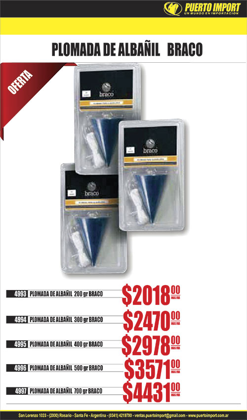 ![]() ABRAZADERA CREMALLERA 9mm 29920 10 a 16mm29921 12 a 20mm29922 15 a 25mm29923 20 a 32mm29924 23 a 36mm29925 28 a 44mm29926 33 a 51mm29927 40 a 60mm![]() ![]() BRAZO LLUVIA 90° acero inox. MOZART 27692 50cm 9072 ![]() CANDADO BCEADO. FRICYCOD 16669 32mm ![]() 16603 CANDADO BCEADO. 20mm TRICIRKAL![]() ![]() CANILLA ESFER.METAL C/MANGA MOZART 16194 3/4" 9453 ![]() 20716 CHALECO REFLECTIVO REJILLA AMARILLO XXL![]() 4219 CHOCLA GRANDE C/TIZA Y NIVEL![]() CINTA METRICA AGRIM.CAJA CERRADA FIBRA 17276 20m 17277 30m 17290 100m ![]() CONCERTINA PERIMETRAL doble cruzada 581 30cm 55vuelta cubre 7m580 45cm 55vuelta cubre 10m![]() 6137 CUTTER HOJA CHICA CHAPA REF![]() ![]() DISCO FLAP 4 1/2" ZIRC. KLINGSPOR 24403 36 CONV. SMT624 SUPRA 24404 40 CONV. SMT624 SUPRA 24405 50 CONV. SMT624 SUPRA 24406 60 CONV. SMT624 SUPRA 25227 80 CONV. SMT325 EXTRA 25228 120 CONV. SMT325 EXTRA 24408 120 CONV. SMT624 SUPRA 25232 120 PLANO SMT325 EXTRA 24115 120 PLANO SMT618 EXTRA 24542 120 PLANO SMT625 SUPRA ![]() ![]() DISCO LIJA VELCRO OX.AL.125mm RUHLMANN 25932 gr 40 25933 gr 60 ![]() 26483 FICHA ELEC.MACHO C/NEUTRO 10A AXIAL NEGRA![]() 11988 FUELLE CONEC. INODORO A MOCHILA CORTO 2"![]() ![]() 29881 GRIF.DUCHA EXT.MONO.5 PIEZAS C/TRANSF/DUCHADOR C/GOLPE GIMP![]() ![]() 27858 GRIF.LAVA.MONO.ABS BOGOTA CIL.V/PLANO BLANCA 9374 MOZART![]() ![]() 29895 GRIF.LAVA.MONO.ABS BOMFIO CIL.V/PLANO BLANCA GIMP![]() ![]() 28119 GRIF.LAVA.MONO.CILOPE CILINDRO V/PLANO ALTA GIMP![]() ![]() 27903 GRIF.LAVA.MONO.MADRID CILIN.V/PALITO ACERO ALTA 9339 MOZART![]() ![]() 28162 GRIF.LAVA.MONO.PIPERS CROMADA GIMP![]() ![]() 28103 GRIF.MESA.MONO.BANGO BRA.MOVIL CROMO PICO L PLANO GIMP![]() ![]() 28107 GRIF.MESA.MONO.EMPIRE ROCIA.EXTR.DOB PICO NEGRA GIMP![]() ![]() 28017 GRIF.MESA.MONO.PERSA BRA.MOVIL CISNE GIMP![]() ![]() 27853 GRIF.PARED MONO.ABS BRA.MOVIL PICO J NEGRA 7153 MOZART![]() ![]() 18542 GRIF.PARED UN AGUA METAL BRAZO MOVIL PICO CISNE 9019 MOZART![]() 12097 HOJA SIERRA MONTARAZ 21" MAD BISON![]() ![]() 24231 LENTE AERO ANTIEMP/FUV/ANRAYA CLARO STEELPRO![]() ![]() 24242 LENTE DISCOVERY FLEX ANTIEMP/FUV/ANRAYA CLARO STEELPRO![]() ![]() 24269 LENTE MIRAGE FUV/ANRAYA CLARO STEELPRO![]() ![]() 24338 LENTE OMEGA ANTIEMP/FUV/ANRAYA P/OPTICO CLARO STEELPRO![]() ![]() 24238 LENTE RUNER ANTIEMP/FUV/ANRAYA CLARO STEELPRO![]() ![]() 24239 LENTE XT ANTIEMP/FUV/ANRAYA CLARO STEELPRO![]() ![]() LIJA NO PAST KLINGSPOR 24602 40 PL31B 24616 50 PL31B 24603 60 PL31B 24604 80 PL31B 24605 100 PL31B 24607 150 PL31B 24608 180 PL31B 24609 220 PL31B 24610 240 PL31B 24611 280 PL31B 24612 320 PL31B 24613 400 PL31B 24614 500 PS33B 24615 600 PS33B 24828 800 PS73BW ![]() 1298 LLAVE TE TUBO 21 PIEZAS ROCK TOOLS![]() ![]() LLUVIA ACERO INOX. REDONDA GIMP 28148 8" ![]() ![]() 3857 MASCARA PROTECTORA FACIAL TIPO LIBUS BR0057 BRACO![]() 32590 MECHA ESCALONADA TITANIO HSS jgox3 4-12/20/32mm![]() 820 MECHA WIDIA jgox5 PCS 4-5-6-8-10![]() MEZCLADOR PINTURA 5297 8 x 40 cm![]() PASADOR C/PORTACAN.ZINC 1314 (10x100)![]() PINTURA ASFALTICA SEC. RAPIDO MEGAFLEX 8505 1 lt ![]() 6370 PINZA PUNTA 6" AMARILLO FODEX![]() PISTOLA ELECT.P/SILICONA 954 CHICA 20W951 GRANDE 40W![]() ![]() PRECINTO PLAS. 4,8x300mm COLOR x 100 9985 amarillo 9987 azul 9986 naranja 9989 rojo 9988 verde ![]() ![]() PUNTA ATORN.1/4 PHILIPS PH2 S2 RUHLMANN 1972 25mm RU34500 5839 75mm RU34700 ![]() ![]() 10090 PUNTA DE PRUEBA AC/DC 6/12/24/50/110/220/380 VOLT RUHLMANN![]() 3675 RESISTENCIA CALEFON FOCO COBREADA![]() 3673 RESISTENCIA CALEFON PULMON ACERO INOXIDABLE![]() 3664 RESISTENCIA CALEFON PULMON BRONCE IMP![]() RODILLO ANTIGOTA MINI thermo roller 603 5cm 607 8cm 608 11cm ![]() RODILLO SIMIL LANA tubo 40mm thermo roller 4145 18cm 4146 22cm ![]() 26774 SPOT SOLAR EXT.LED 48COB LD 30W PARANTE/SENSOR MOVIMIENTO![]() ![]() TRAJE LLUVIA FORESTAL REF. AMARILLO STEELPRO 14979 M | ![]() ![]() ALAMBRE GALVANIZADO x 2kg 9786 18 9787 20 9788 22 ![]() ![]() BRAZO LLUVIA 45° acero inox. MOZART 27694 25cm 8705 ![]() 654 BUSCAPOLO CHICO PUNTA INTERCAMBIABLE REF.![]() CANDADO BCEADO. MATE ROCK TOOLS 16141 25mm ![]() ![]() CANILLA BCE.C/MANGA 11780 1/2" GIMP![]() ![]() CASCO SEGURIDAD C/ARNES MILENIUM LIBUS 16426 AMARILLO ![]() 19736 CHOCLA GRANDE![]() CINTA METRICA 3 frenos c/iman GIANT 17240 3m 19mm 17243 10m 25mm ![]() 1639 CINTA PELIGRO 8cm x 200m![]() ![]() 6103 CORTAVIDRIO C/ACEITE T/SILBERTSNICH TOOLMAK![]() 6600 CUTTER HOJA CHICA CORREDEARA METAL REF![]() DISCO FLAP 4 1/2" ZIRCONIO NORTON 32532 60 ![]() 21813 ESCAREADOR P/USO CON PISTOLA DE PINTAR![]() 75 FICHA ELEC.HEMBRA C/NEUTRO 10A AXIAL NEGRA C/PRENSACABLE![]() ![]() FRATACHO ABRASIVO ABRASOL 2956 FINO 855 MEDIANO 2957 GRUESO ![]() ![]() 29875 GRIF.DUCHA EXT.MONO.5 PIEZAS C/TRANSF/DUCHADOR GIMP![]() ![]() 27887 GRIF.LAVA.MONO.ABS BOGOTA CIL.V/PLANO CROM. 7166 MOZART![]() ![]() 27904 GRIF.LAVA.MONO.ABS CIL.V/PLANO NEGRA 9911 MOZART![]() ![]() 28161 GRIF.LAVA.MONO.FOX CROMADA GIMP![]() ![]() 27861 GRIF.LAVA.MONO.MADRID CILIN.V/PLANO ALTA 9039 MOZART![]() ![]() 28115 GRIF.LAVA.MONO.TUBE CILINDRO V/PALITO GIMP![]() ![]() 28108 GRIF.MESA.MONO.BRONX C/PUENTE Y RESORTE NEGRA GIMP![]() ![]() 28105 GRIF.MESA.MONO.FENIX NEGRA ROCIADOR EXTRAIBLE GIMP![]() ![]() 28053 GRIF.MESA.MONO.PERSA NEGRA BRA.MOVIL CISNE GIMP![]() ![]() 28111 GRIF.PARED MONO.BULL NEGRA BRA.FLEXIBLE CONO GIMP![]() 220 GUANTE DESCARNE GRIS Y JEAN![]() ![]() HOJA SIERRA CA.BANCO MAD.x 12 BRACO 4760 mod 2 0.28x0.82 4761 mod 4 0.32x1.02 4762 mod 6 0.36x1.20 4763 mod 8 0.40x1.36 4764 mod 10 0.44x1.50 ![]() ![]() 25132 LENTE ARGON FUV/ANRAYA OSCURO LIBUS![]() ![]() 28028 LENTE ECOLINE FUV/ANRAYA CLARO LIBUS![]() ![]() 24228 LENTE NITRO FUV/ANRAYA CLARO STEELPRO![]() 24291 LENTE PATILLA REGULABLE OSCURO![]() ![]() 24264 LENTE SPY FUV/ANRAYA CLARO STEELPRO![]() ![]() LIJA AL AGUA KLINGSPOR KL278629 60 PS8CKL255628 80 PS8CKL255629 100 PS8CKL255630 120 PS8CKL255631 150 PS8CKL253937 180 PS8AKL253938 220 PS8AKL255996 240 PS8AKL255997 280 PS8AKL253939 320 PS8AKL255632 360 PS8AKL253940 400 PS8AKL255998 500 PS8