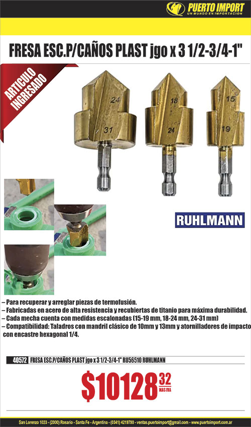 ![]() ![]() INSERTO C/ACCSESORIOS jgo 15 pcs RUHLMANN 21230 INSERTO M12 x 1 x 15 pcs RU43018 21255 INSERTO M 6 x 1 RU43021 21258 INSERTO M 7 x 1 RU43030 21260 INSERTO M10 x 1 RU43031 21256 INSERTO M10 x 1.25 RU43025 21261 INSERTO M10 x 1.5 RU43023 21257 INSERTO M12 x 1.25 RU43026 RUHLMAN![]() ![]() 40415 ACC.TORNOx 418 piezas RU8543 RUHLMANN![]() 14443 ANAFE ELECTRICO 2 HORNALLAS c/reg y corte blanco 2000W GLOSS![]() ![]() 40400 BOCALLAVE ALLEN jgo E.1/2 A/IMPACT.75mm x 10pc 5a19mmRU24009![]() ![]() 40342 BOCALLAVE P/SACAR AMORTIGUADOR Y CARTER VW RU43151 RUHLMAN![]() ![]() CABEZAL ANGULAR 1/4" ADAPT 2 en 1 C/MOVIMIENTO 40678 150cmRU696040677 90cmRU6959![]() CANDADO ACERO CROMADO DOB.TRABA LLAVE COMP. 16700 30mm 16701 40mm 16702 50mm 16703 60mm ![]() CANDADO COMBINACION 50048 23mm50049 32mm![]() ![]() 10249 CUTTER H/TRAPEZOIDAL PLEGABLE c/repuestos TOOLMAK![]() ![]() 40008 DISCO DIAMANT.PORCELANATO SUPER TRF TURBO 4 1/2" RU15359 RUH![]() ![]() 40444 EJE FLEXIBLE 1/4" x 300mm C/ACOPLE RAP. MAGNETICO RU6958 RUL![]() ![]() ESCOFINA MADERA P/AMOLADORA RUHLMANN 40602 M14 x 25mm RU15376 ![]() ![]() 40320 EXTRACTOR DE POLEAS DE AMORTIGUADOR KIT RU43165 RUHLMANN![]() ![]() EXTRACTOR DE RODAM. T/CEPO RUHLMANN 40330 30 x 50 RU16035 40331 35 x 75 RU16036 ![]() ![]() 40583 EXTRACTOR DE ROTULAS CAMIONETA 4x4/4x2 10 pcs RU43133 RUHLMA![]() ![]() FRESADORA AVELLANADORA RUHLMANN 40630 8 x 8 x 2.8mm RU56556 40631 8 x 8 x 3.5mm RU56557 40632 8 x 8 x 4mm RU56558 40633 8 x 10 x 2.8mm RU56559 40634 8 x 10 x 3.5mm RU56560 40635 8 x 10 x 4.0mm RU56561 ![]() ![]() 40604 GUIA PARALELA P/SIERRA CIRCULAR/CEPILLO /FRESADORA RU8015 RU![]() ![]() 40168 KIT REMOVEDOR TERMINALES CABLE AUTO x 3 pcs RU43111 RUHLAMN![]() ![]() LLAVE CRIQUET c/expulsor RUHLMANN 40404 1/4" RU30851 40410 3/8" RU30852 40411 1/2" RU30853 ![]() ![]() 40615 LLAVE PIPA jgo 6pz 8-9/10-11/12-13/14-15/16-17/18-19 RU43001![]() ![]() 26596 MARTILLO CAB.DOBLE PVC - GOMA MANGO FIBRA TOOLMAK![]() ![]() 40585 MECHA DIAMANT.COPA P/AMOLADORA 30mm RU58028 RUHLMANN![]() ![]() MECHA WIDIA TOOLMAK 29195 5mm 29205 8 x 400mm 29206 10 x 400mm 29198 10mm 29207 12 x 400mm 29199 12mm ![]() ![]() 40430 NIVEL PLEGABLE 5 LADOS MAGNETICO 4 BURBUJAS RU55050 RUHLMANN![]() ![]() PICO/TUBO CONTACTO MIG RU57502 RUHLMANN 21252 MIG T 15 x 1.2 RU57504 RUHLMANN40344 T15 x 0.8 M6 SOLDADORA MIG RU57502 RUHLMA![]() 9330 PINZA CRIMPIADORA TELEFONIA + PELACABLE![]() ![]() 40131 PINZA SACAABRAZADERAS RECTA RU37005 RUHLMANN![]() ![]() 40380 PROBADOR DE FUGAS DE RADIADOR x 33 pcs RU43757 RUHLMAN![]() ![]() RUEDA P/CORTACERAMICO LAPIZ T/RUBI RUHLMANN 40434 8mm RU14004 40435 10mm RU14005 ![]() ![]() 40428 SOGA REMOLQUE CABLE ACERO 8mm x 4m RU38160 RUHLMANN![]() 6939 TAPON TERMO AC.MACHO T/STANLEY PICO SEBADOR![]() TUBO LED PORTATIL RECARGABLE LD 15741 52cm | ![]() ![]() 40399 ACC.TORNO CEPILLOS INOX/BRONCE/NYLON 18 PCS RU8540 RUHLMANN![]() ![]() 40045 ACC.TORNO VASTAGO Y LIJAS BANDA x 102 pcs RU8533 RUHLMANN![]() ![]() 40314 ALARGUE AMOLADORA MANO 140mm M14 RU8561 RUHLMANN![]() 14445 ANAFE ELECTRICO 2 HORNALLAS c/reg y corte negro 2000W GLOSS![]() 33695 BOCALLAVE jgo E.1/4 y 1/2mm 108 pcs 32mm![]() ![]() BUSCAPOLO TOOLMAK 14451 GRANDE ![]() ![]() 15250 CALIBRE FIBRA 150mm TOOLMARK![]() CANDADO ACERO CROMADO ANTIBANDALICO LLAVE COMP. 16673 40mm 16679 50mm 16680 60mm 16681 70mm ![]() 24505 CINTA EMPAQUE 48mm x 100m TRANSPARENTE AMARILLA BRACO![]() 28970 DESTORNILLADOR CONO x 16 pcs![]() ![]() 40302 DISCO MUELA PLANO MADERA 115mm RU15392 RUHLMANN![]() ![]() ELECTRODO PUNTA AZUL 6013 BRACO 11309 2 mm x 5 kg PUNTA AZUL 6013 BRACO11310 2.5 mm x 5 kg PUNTA AZUL 6013 BRACO11311 3.25 mm x 5 kg PUNTA AZUL 6013 BRACO![]() ![]() 40608 ESCUADRA MULTIFUNCION ACERO INOXIDABLE RU51053 RUHLMANN![]() ![]() 40440 EXTRACTOR DE POLEAS/ENGRANAJES/COJINETES x 10pz RU43166 RUHL![]() ![]() 40450 EXTRACTOR DE RODAM.DEZLIZABLE UNIV. x 13pz RU43159 RUHLMANN![]() ![]() 40425 FILTRO COMPRESOR UNIVERSAL CARCAZA METALICA RU45007 RUHLMANN![]() ![]() GRAMPA PRENSACABLE 4165 1/8" 3mm BRACO4166 3/16" 4mm BRACO4167 1/4" 6mm BRACO4168 5/16" 8mm BRACO4169 3/8" 10mm BRACO![]() ![]() INSERTO RUHLMANN 21226 M 8 x 1 x 25 pcs RU43064 21270 M 8 x 1.25 x 25 pcs RU43054 21228 M10 x 1 x 25 pcs RU43055 21229 M10 x 1.25 x 25 pcs RU43056 21271 M10 x 1.5 x 25 pcs RU43057 21272 M11 x 1.5 x 25 pcs RU43067 21273 M12 x 1.25 x 15 pcs RU43058 21274 M12 x 1.50 x 15 pcs RU43059 21275 M12 x 1.75 x 15 pcs RU43060 21276 M14 x 1.25 x 5 pcs RU43061 21277 M14 x 1.50 x 5 pcs RU43072 21278 M16 x 1.50 x 5 pcs RU43040 ![]() LISTON C/CINTA LED LD ENCASTRABLE 35502 8W T5 400mm 35503 8W T5 600mm 35501 9W T8 600mm ![]() ![]() 40361 LLAVE DE EXTENSION 15" + 3 ADAPT RU43016 RUHLMANN![]() ![]() 40306 MANDRIL ACODADO 90¦ 10mm P/TALAD.C/MANILLAR RU12000 RUHLMANN![]() ![]() 40212 MECHA COPA TITANIO BIMETAL.JGO.x 5 pcs RU60041 UHLMANN![]() ![]() 10053 MECHA WIDIA jgo x 5 pcs 4/5/6/8/10 mm estuche TOOLMAK![]() ![]() 40224 MINI EXTRACTOR LIMPIAPARABRIZAS Y COJINETE RU16047 RUHLMANN![]() 14408 PICO INFLADOR DE NEUMATICOS P/COMPRESOR GOMERIA![]() ![]() 40341 PINZA ALICATE CURVA NYLON P/MANGUERA x 3pcs RU43756 RUHLMAN![]() ![]() 40142 PINZA P/CABLE RESORTE FRENO RU44012 RUHLMANN![]() ![]() 40607 PINZA SACASEGUER abrir y cerrar 240mm jgo 4 pz RU1020 RUHLM![]() ![]() PUNTA ATORN.1/4 PHILIPS PH2 MAG.DOBLE x10u TOOLMAK 20413 50mm ![]() ![]() 40620 SEPARADOR SUSPENSION UNIVERSAL RU3162 RUHLMAN![]() ![]() 40304 SOPORTE 45¬ REGULABLE P/AMOLADORA MANO RU21021 RUHLMANN![]() ![]() 40382 TERRAJA SACA OVULOS VALVULA 4 FUNCIONES RU43758 RUHLAMN | ![]() ![]() 40195 ACC.TORNO DISCO C/VASTAGO DIAMANTADO TRF 40mm RU8535 RUHLMA![]() ![]() 40416 ACC.TORNOx 306 piezas RU8542 RUHLMANN![]() ![]() ANAFE 2 HORNALLAS BLANCO ABRASOL 24298 GAS ENVASADO 24296 GAS NATURAL ![]() ![]() BISELADOR C/TOPE FLOTANTE RUHLMAN 40645 8 x 8 x 3 RU56550 40646 8 x 8 x 3.5 RU56551 40647 8 x 8 x 4 RU56552 40648 8 x 10 x 3 RU56553 40649 8 x 10 x 3.5 RU56554 40650 8 x 10 x 4 RU56555 ![]() ![]() 40420 BOMBA TRASVA. COM