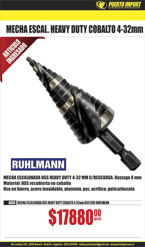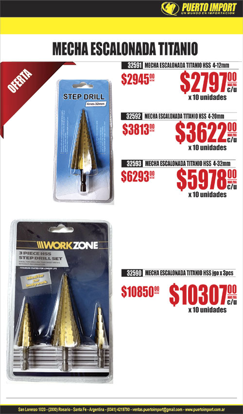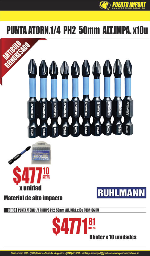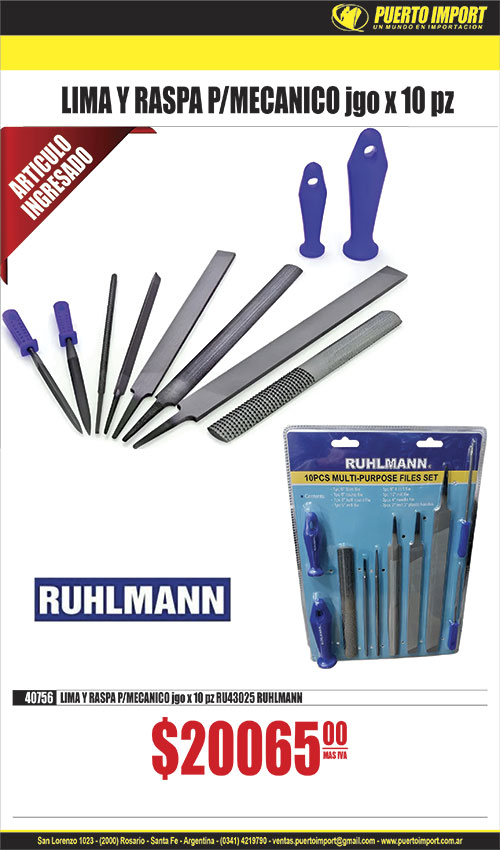 ![]() ![]() INSERTO C/ACCSESORIOS jgo 15 pcs RUHLMANN 21230 INSERTO M12 x 1 x 15 pcs RU43018 21255 INSERTO M 6 x 1 RU43021 21258 INSERTO M 7 x 1 RU43030 21260 INSERTO M10 x 1 RU43031 21256 INSERTO M10 x 1.25 RU43025 21261 INSERTO M10 x 1.5 RU43023 21257 INSERTO M12 x 1.25 RU43026 RUHLMAN![]() ![]() 40415 ACC.TORNOx 418 piezas RU8543 RUHLMANN![]() 14443 ANAFE ELECTRICO 2 HORNALLAS c/reg y corte blanco 2000W GLOSS![]() ![]() 40400 BOCALLAVE ALLEN jgo E.1/2 A/IMPACT.75mm x 10pc 5a19mmRU24009![]() ![]() 40342 BOCALLAVE P/SACAR AMORTIGUADOR Y CARTER VW RU43151 RUHLMAN![]() ![]() CABEZAL ANGULAR 1/4" ADAPT 2 en 1 C/MOVIMIENTO 40677 90cmRU6959![]() ![]() 40568 CALIBRE P/ROSCAS MM - SAE RU47100 RUHLMAN![]() CANDADO ACERO CROMADO ARO LARGO DOB.TRABA LLAVE COMP. 16693 30mm 16694 40mm 16695 50mm 16696 60mm ![]() ![]() 10249 CUTTER H/TRAPEZOIDAL PLEGABLE c/repuestos TOOLMAK![]() ![]() 40008 DISCO DIAMANT.PORCELANATO SUPER TRF TURBO 4 1/2" RU15359 RUH![]() ![]() 40444 EJE FLEXIBLE 1/4" x 300mm C/ACOPLE RAP. MAGNETICO RU6958 RUL![]() ![]() ESCOFINA MADERA P/AMOLADORA RUHLMANN 40602 M14 x 25mm RU15376 ![]() ![]() 40320 EXTRACTOR DE POLEAS DE AMORTIGUADOR KIT RU43165 RUHLMANN![]() ![]() EXTRACTOR DE RODAM. T/CEPO RUHLMANN 40330 30 x 50 RU16035 ![]() ![]() 40583 EXTRACTOR DE ROTULAS CAMIONETA 4x4/4x2 10 pcs RU43133 RUHLMA![]() ![]() FRESADORA AVELLANADORA RUHLMANN 40630 8 x 8 x 2.8mm RU56556 40631 8 x 8 x 3.5mm RU56557 40632 8 x 8 x 4mm RU56558 40633 8 x 10 x 2.8mm RU56559 40634 8 x 10 x 3.5mm RU56560 40635 8 x 10 x 4.0mm RU56561 ![]() ![]() 40604 GUIA PARALELA P/SIERRA CIRCULAR/CEPILLO /FRESADORA RU8015 RU![]() ![]() 40168 KIT REMOVEDOR TERMINALES CABLE AUTO x 3 pcs RU43111 RUHLAMN![]() LISTON C/CINTA LED LD ENCASTRABLE 35502 8W T5 400mm 35503 8W T5 600mm 35501 9W T8 600mm ![]() ![]() 40361 LLAVE DE EXTENSION 15" + 3 ADAPT RU43016 RUHLMANN![]() ![]() 40306 MANDRIL ACODADO 90¦ 10mm P/TALAD.C/MANILLAR RU12000 RUHLMANN![]() ![]() 40212 MECHA COPA TITANIO BIMETAL.JGO.x 5 pcs RU60041 UHLMANN![]() ![]() 10053 MECHA WIDIA jgo x 5 pcs 4/5/6/8/10 mm estuche TOOLMAK![]() ![]() 40224 MINI EXTRACTOR LIMPIAPARABRIZAS Y COJINETE RU16047 RUHLMANN![]() 14408 PICO INFLADOR DE NEUMATICOS P/COMPRESOR GOMERIA![]() ![]() 40341 PINZA ALICATE CURVA NYLON P/MANGUERA x 3pcs RU43756 RUHLMAN![]() ![]() 40142 PINZA P/CABLE RESORTE FRENO RU44012 RUHLMANN![]() ![]() 40607 PINZA SACASEGUER abrir y cerrar 240mm jgo 4 pz RU1020 RUHLM![]() ![]() PUNTA ATORN.1/4 PHILIPS PH2 MAG.DOBLE x10u TOOLMAK 20413 50mm ![]() ![]() 40620 SEPARADOR SUSPENSION UNIVERSAL RU3162 RUHLMAN![]() ![]() 40304 SOPORTE 45¬ REGULABLE P/AMOLADORA MANO RU21021 RUHLMANN![]() ![]() 40382 TERRAJA SACA OVULOS VALVULA 4 FUNCIONES RU43758 RUHLAMN | ![]() ![]() 40399 ACC.TORNO CEPILLOS INOX/BRONCE/NYLON 18 PCS RU8540 RUHLMANN![]() ![]() 40045 ACC.TORNO VASTAGO Y LIJAS BANDA x 102 pcs RU8533 RUHLMANN![]() ![]() 40314 ALARGUE AMOLADORA MANO 140mm M14 RU8561 RUHLMANN![]() 14445 ANAFE ELECTRICO 2 HORNALLAS c/reg y corte negro 2000W GLOSS![]() 33695 BOCALLAVE jgo E.1/4 y 1/2mm 108 pcs 32mm![]() ![]() BUSCAPOLO TOOLMAK 14451 GRANDE ![]() ![]() 15250 CALIBRE FIBRA 150mm TOOLMARK![]() CANDADO ACERO CROMADO ANTIBANDALICO LLAVE COMP. 16673 40mm 16679 50mm 16680 60mm 16681 70mm ![]() 24505 CINTA EMPAQUE 48mm x 100m TRANSPARENTE AMARILLA BRACO![]() 28970 DESTORNILLADOR CONO x 16 pcs![]() ![]() 40302 DISCO MUELA PLANO MADERA 115mm RU15392 RUHLMANN![]() ![]() ELECTRODO PUNTA AZUL 6013 BRACO 11309 2 mm x 5 kg PUNTA AZUL 6013 BRACO11310 2.5 mm x 5 kg PUNTA AZUL 6013 BRACO11311 3.25 mm x 5 kg PUNTA AZUL 6013 BRACO![]() ![]() 40608 ESCUADRA MULTIFUNCION ACERO INOXIDABLE RU51053 RUHLMANN![]() ![]() 40440 EXTRACTOR DE POLEAS/ENGRANAJES/COJINETES x 10pz RU43166 RUHL![]() ![]() 40450 EXTRACTOR DE RODAM.DEZLIZABLE UNIV. x 13pz RU43159 RUHLMANN![]() ![]() 40425 FILTRO COMPRESOR UNIVERSAL CARCAZA METALICA RU45007 RUHLMANN![]() ![]() GRAMPA PRENSACABLE 4165 1/8" 3mm BRACO4166 3/16" 4mm BRACO4167 1/4" 6mm BRACO4168 5/16" 8mm BRACO4169 3/8" 10mm BRACO![]() ![]() INSERTO RUHLMANN 21226 M 8 x 1 x 25 pcs RU43064 21270 M 8 x 1.25 x 25 pcs RU43054 21228 M10 x 1 x 25 pcs RU43055 21229 M10 x 1.25 x 25 pcs RU43056 21271 M10 x 1.5 x 25 pcs RU43057 21272 M11 x 1.5 x 25 pcs RU43067 21273 M12 x 1.25 x 15 pcs RU43058 21274 M12 x 1.50 x 15 pcs RU43059 21275 M12 x 1.75 x 15 pcs RU43060 21276 M14 x 1.25 x 5 pcs RU43061 21277 M14 x 1.50 x 5 pcs RU43072 21278 M16 x 1.50 x 5 pcs RU43040 ![]() ![]() LLAVE CRIQUET c/expulsor RUHLMANN 40404 1/4" RU30851 40410 3/8" RU30852 40411 1/2" RU30853 ![]() ![]() 40615 LLAVE PIPA jgo 6pz 8-9/10-11/12-13/14-15/16-17/18-19 RU43001![]() ![]() 26596 MARTILLO CAB.DOBLE PVC - GOMA MANGO FIBRA TOOLMAK![]() ![]() 40585 MECHA DIAMANT.COPA P/AMOLADORA 30mm RU58028 RUHLMANN![]() ![]() MECHA WIDIA TOOLMAK 29195 5mm 29205 8 x 400mm 29206 10 x 400mm 29198 10mm 29207 12 x 400mm 29199 12mm ![]() ![]() 40430 NIVEL PLEGABLE 5 LADOS MAGNETICO 4 BURBUJAS RU55050 RUHLMANN![]() ![]() PICO/TUBO CONTACTO MIG RU57502 RUHLMANN 21252 MIG T 15 x 1.2 RU57504 RUHLMANN40344 T15 x 0.8 M6 SOLDADORA MIG RU57502 RUHLMA![]() 9330 PINZA CRIMPIADORA TELEFONIA + PELACABLE![]() ![]() 40131 PINZA SACAABRAZADERAS RECTA RU37005 RUHLMANN![]() ![]() 40380 PROBADOR DE FUGAS DE RADIADOR x 33 pcs RU43757 RUHLMAN![]() ![]() RUEDA P/CORTACERAMICO LAPIZ T/RUBI RUHLMANN 40434 8mm RU14004 40435 10mm RU14005 ![]() ![]() 40428 SOGA REMOLQUE CABLE ACERO 8mm x 4m RU38160 RUHLMANN![]() 6939 TAPON TERMO AC.MACHO T/STANLEY PICO SEBADOR | ![]() ![]() 40195 ACC.TORNO DISCO C/VASTAGO DIAMANTADO TRF 40mm RU8535 RUHLMA![]() ![]() 40416 ACC.TORNOx 306 piezas RU8542 RUHLMANN![]() ![]() ANAFE 2 HORNALLAS BLANCO ABRASOL 24298 GAS ENVASADO 24296 GAS NATURAL ![]() ![]() BISELADOR C/TOPE FLOTANTE RUHLMAN 40645 8 x 8 x 3 RU56550 40646 8 x 8 x 3.5 RU56551 40647 8 x 8 x 4 RU56552 40648 8 x 10 x 3 RU56553 40649 8 x 10 x 3.5 RU56554 40650 8 x 10 x 4 RU56555 ![]() ![]() 40420 BOMBA TRASVA. COMBUSTIBLE Y OTROS + INFLADOR RU12007 RUHLMAN![]() CABLES DE ARRAN
