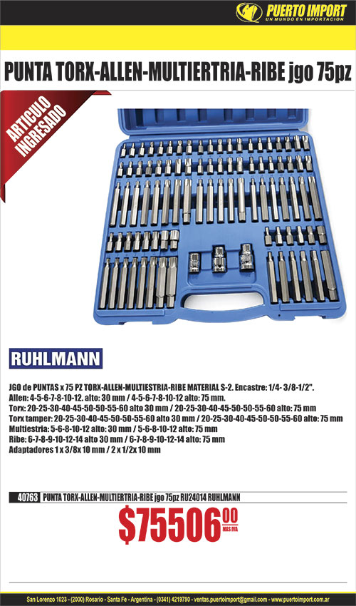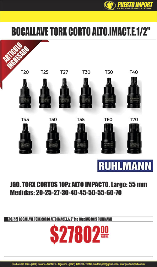 ![]() BOCALLAVE IMP 20166 E.1/4 ESTR. 5/32 20165 E.1/4 ESTR. 1/4 20167 E.1/4 ESTR. 3/8 20168 E.1/4 HEX. 5/32 20169 E.1/4 HEX. 3/16 20170 E.1/4 HEX. 7/32 20171 E.1/4 HEX. 1/4 20172 E.1/4 HEX. 9/32 20173 E.1/4 HEX. 5/16 20174 E.1/4 HEX. 11/32 20176 E.1/4 HEX. 7/16 20177 E.1/4 HEX. 1/2 20323 E.1/4 HEX. 9/16 20320 E.1/4 HEX. 13/32 20321 E.1/4 HEX. 15/32 20322 E.1/4 HEX. 17/32 20179 E.1/4 HEX. 4.5mm 20178 E.1/4 HEX. 4mm 20181 E.1/4 HEX. 5.5mm 20180 E.1/4 HEX. 5mm 20182 E.1/4 HEX. 6mm 20183 E.1/4 HEX. 7mm 20185 E.1/4 HEX. 9mm 20188 E.1/4 HEX. 12mm 20305 E.3/8 HEX. 16mm ![]() ![]() BOCALLAVE E.1/2 HEX. AI. STANLEY STA89688 7/8 STA89690 1 STA86455 1 STANLEYSTA89115 15mm STA89118 18mm STA93380 19mm STA89120 20mm STA89121 21mm STA89125 25mm ![]() ![]() BOCALLAVE E.1/2 HEX. BAHCO BHSX21 21mm BHSX23 23mm BHSX26 26mm BHSX28 28mm ![]() ![]() BOCALLAVE E.1/4 HEX. STANLEY STA86021 5/32 STA86022 3/16 STA86023 7/32 STA86025 9/32 STA86027 11/32 STA86030 1/2 STA86101 4mm STA86102 5mm STA86103 6mm STA86106 9mm ![]() ![]() BOCALLAVE E.3/4 ESTR. CROSSMAN CRS9948186 13/16 CRS9948190 15/16 CRS9948194 1-1/16 CRS9948196 1-1/8 CRS9948198 1-3/16 CRS9948200 1-1/4 CRS9948204 1-3/8 CRS9948212 1-11/16 CRS9948220 2 ![]() ![]() BOCALLAVE E.3/8 HEX. CROSSMAN CRS9944876 5/8 CRS9944878 11/16 CRS9944886 7/8 CRS9944810 9mm CRS9944816 12mm CRS9944824 16mm CRS9944828 18mm CRS9944832 20mm CRS9944834 21mm CRS9944836 22mm CRS9944838 23mm ![]() 3262 BOCALLAVE jgo C/DEST.CRIQUET ARTIC.x 15 pcs![]() 3284 BOCALLAVE jgo C/DEST.CRIQUET ARTIC.x 41 pcs | ![]() ![]() BOCALLAVE E.1/2 ESTR. BAHCO BHSSAE13/16 13/16 BHSSAE15/16 1-5/16 ![]() BOCALLAVE E.1/2 ESTR. INAFOR 28579 5/16 28581 7/16 28595 23mm ![]() ![]() BOCALLAVE E.1/2 ESTR.S.LAR. STANLEY STA86484 11/16 STA86485 3/4 STA86486 13/16 STA86487 7/8 STA86488 15/16 STA86489 1 STA86490 1-1/16 STA86491 1-1/8 STA86420 12mm STA86426 18mm STA86428 20mm STA86431 23mm STA86433 25mm STA86434 26mm STA86435 27mm STA86436 28mm ![]() ![]() BOCALLAVE E.1/2 HEX. STANLEY STA86384 1/4 STA86398 5/16 STA86442 3/8 STA86443 7/16 STA86445 9/16 STA88766 5/8 STA88767 11/16 STA88768 3/4 STA88769 13/16 STA86450 25/32 STA88770 7/8 STA88771 15/16 STA86453 15/16 STA88773 1 STA88774 1-1/16 STA86456 1-1/16 STA88775 1-1/8 STA86457 1-1/8 STA88776 1-1/4 STA86509 9mm STA86520 20mm STA88743 21mm STA88745 23mm STA86525 25mm STA88747 25mm STA86526 26mm STA86528 28mm STA88750 28mm ![]() ![]() BOCALLAVE E.3/4 ESTR. STANLEY STA89661 3/4 STA89662 13/16 STA89663 7/8 STA89665 1 STA89666 1-1/16 STA89667 1-1/8 STA89668 1-3/16 STA89669 1-1/4 STA89674 1-5/8 STA89621 21mm STA89622 22mm STA89623 23mm STA89624 24mm STA89625 25mm STA89626 26mm ![]() ![]() BOCALLAVE E.3/8 HEX. STANLEY STA86255 1/4 STA86256 5/16 STA88976 3/8 STA88977 7/16 STA88978 1/2 STA88979 9/16 STA88980 5/8 STA88161 11/16 STA86267 11/16 STA88162 3/4 STA86163 25/32 STA88983 13/16 STA86270 7/8 STA88165 7/8 STA86302 7mm STA86303 8mm STA86304 9mm STA86305 10mm STA86307 12mm STA86310 15mm STA86313 18mm STA88131 18mm STA88133 20mm STA86316 21mm STA86317 22mm STA88136 23mm STA88137 24mm ![]() ![]() MANGO BERBIQUI STANLEY STA86412 enc 1/2 (425mm) | ![]() ![]() BOCALLAVE E.1/2 ESTR. CROSSMAN CRS9946186 5/16 CRS9946126 9mm ![]() ![]() BOCALLAVE E.1/2 ESTR. STANLEY STA86494 1/4 STA86460 5/16 STA86461 3/8 STA86462 7/16 STA88816 11/16 STA86466 11/16 STA88817 3/4 STA86467 3/4 STA88818 13/16 STA86468 13/16 STA86498 25/32 STA88819 7/8 STA86469 7/8 STA88820 15/16 STA86470 15/16 STA88821 1" STA86471 1" STA86472 1-1/16 STA88822 1-1/16 STA88823 1-1/8 STA86473 1-1/8 STA88824 1-1/4 STA86474 1-1/4 STA86541 9mm STA88790 18mm STA88792 20mm STA86553 21mm STA88793 21mm STA88795 23mm STA86561 24mm STA86556 25mm STA86558 26mm STA86562 28mm ![]() ![]() BOCALLAVE E.1/4 HEX. CROSSMAN CRS9944264 5/32 CRS9944272 9/32 CRS9944276 11/32 CRS9944206 4.5mm CRS9944204 4mm CRS9944210 5.5mm CRS9944208 5mm CRS9944218 9mm CRS9944224 12mm ![]() ![]() BOCALLAVE E.1/4 HEX. S.LAR. CROSSMAN CRS9944446 4.5mm CRS9944450 5,5mm CRS9944448 5mm CRS9944458 9mm ![]() ![]() BOCALLAVE E.3/4 HEX. CROSSMAN CRS9948020 25mm ![]() ![]() BOCALLAVE E.3/4 HEX. STANLEY STA89319 19mm STA89324 24mm STA89325 25mm STA89327 27mm STA89328 28mm ![]() ![]() BOCALLAVE E.3/8 HEX. S.LAR. STANLEY STA88985 3/8 STA88989 5/8 STA86286 11/16 STA88991 3/4 STA88287 3/4 STA86288 13/16 STA86323 11mm STA86324 12mm STA86327 15mm STA88825 16mm STA88826 18mm STA88827 20mm STA88837 23mm ![]() ![]() EXTENSION DE BOCALLAVE STANLEY STA88729 enc 1/2x500mm |