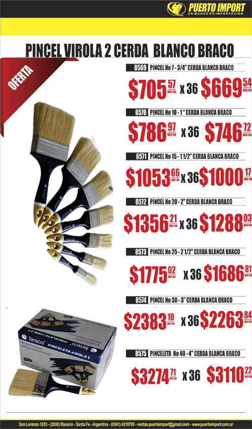 ![]() BOQUILLA ATORN. MAG.CrV. CONER 5914 1/4"x65mm ![]() ![]() BRAZO LLUVIA 90° acero inox. MOZART 27692 50cm 9072 ![]() CANDADO BCEADO. MATE ROCK TOOLS 16141 25mm ![]() ![]() CANILLA BCE.C/MANGA 11780 1/2" GIMP![]() ![]() CASCO SEGURIDAD C/ARNES MILENIUM LIBUS 16426 AMARILLO ![]() 19736 CHOCLA GRANDE![]() CINTA METRICA 3 frenos c/iman GIANT 17240 3m 19mm 17243 10m 25mm ![]() 1639 CINTA PELIGRO 8cm x 200m![]() ![]() 6103 CORTAVIDRIO C/ACEITE T/SILBERTSNICH TOOLMAK![]() 6600 CUTTER HOJA CHICA CORREDEARA METAL REF![]() DISCO FLAP 4 1/2" ZIRCONIO NORTON 32532 60 ![]() ![]() DISCO LIJA VELCRO OX.AL.125mm RUHLMANN 25932 gr 40 25933 gr 60 ![]() 75 FICHA ELEC.HEMBRA C/NEUTRO 10A AXIAL NEGRA C/PRENSACABLE![]() ![]() FRATACHO ABRASIVO ABRASOL 2956 FINO 855 MEDIANO 2957 GRUESO ![]() ![]() 29881 GRIF.DUCHA EXT.MONO.5 PIEZAS C/TRANSF/DUCHADOR C/GOLPE GIMP![]() ![]() 27858 GRIF.LAVA.MONO.ABS BOGOTA CIL.V/PLANO BLANCA 9374 MOZART![]() ![]() 29895 GRIF.LAVA.MONO.ABS BOMFIO CIL.V/PLANO BLANCA GIMP![]() ![]() 28119 GRIF.LAVA.MONO.CILOPE CILINDRO V/PLANO ALTA GIMP![]() ![]() 27903 GRIF.LAVA.MONO.MADRID CILIN.V/PALITO ACERO ALTA 9339 MOZART![]() ![]() 28162 GRIF.LAVA.MONO.PIPERS CROMADA GIMP![]() ![]() 28103 GRIF.MESA.MONO.BANGO BRA.MOVIL CROMO PICO L PLANO GIMP![]() ![]() 28107 GRIF.MESA.MONO.EMPIRE ROCIA.EXTR.DOB PICO NEGRA GIMP![]() ![]() 28017 GRIF.MESA.MONO.PERSA BRA.MOVIL CISNE GIMP![]() ![]() 27853 GRIF.PARED MONO.ABS BRA.MOVIL PICO J NEGRA 7153 MOZART![]() ![]() 18542 GRIF.PARED UN AGUA METAL BRAZO MOVIL PICO CISNE 9019 MOZART![]() 12097 HOJA SIERRA MONTARAZ 21" MAD BISON![]() ![]() 24231 LENTE AERO ANTIEMP/FUV/ANRAYA CLARO STEELPRO![]() ![]() 24286 LENTE DESERT ANTIEMP/FUV/ANRAYA ANGUL. CLARO STEELPRO![]() ![]() 28027 LENTE ECOLINE FUV/ANRAYA OSCURO LIBUS![]() ![]() 24228 LENTE NITRO FUV/ANRAYA CLARO STEELPRO![]() 24290 LENTE PATILLA REGULABLE CLARO![]() ![]() 24238 LENTE RUNER ANTIEMP/FUV/ANRAYA CLARO STEELPRO![]() ![]() 24276 LENTE SPY FUV/ANRAYA OSCURO STEELPRO![]() ![]() LIJA AL AGUA KLINGSPOR KL278629 60 PS8CKL255628 80 PS8CKL255629 100 PS8CKL255630 120 PS8CKL255631 150 PS8CKL253937 180 PS8AKL253938 220 PS8AKL255996 240 PS8AKL255997 280 PS8AKL253939 320 PS8AKL255632 360 PS8AKL253940 400 PS8AKL255998 500 PS8AKL253941 600 PS8AKL253942 800 PS8AKL253943 1000 PS8AKL253944 1200 PS8AKL255633 1500 PS8AKL269344 2000 PS8AKL269352 2500 PS8A![]() 28556 LINTERNA MINERO LED 3 AAA ON/OFF/INTERMITENTE![]() ![]() LLUVIA ACERO INOX. CUADRADA GIMP 28199 6" ![]() 32594 MANDRIL 13mm 20UNF llave de mandril![]() 15734 MATAMOSQUITOS ELEC.P/TABLETA C/CABLE![]() ![]() MECHA SACABOCADO TAPON MADERA RUHLMANN 4689 5/16" RU51102 4690 3/8" RU51101 4691 1/2" RU51100 ![]() MENSULA P/SPLIT x 2 17449 hasta 3000 frig. 1,5mm 42cm 17452 hasta 4500 frig. 2mm 47cm 17451 hasta 6000 frig. 2mm 52cm 17453 hasta 7500 frig. 2mm 60cm ![]() ![]() PINCEL CERDA BLANCA ABRASOL 5246 N° 30 - 3" ![]() 40003 PINZA PICO DE LORO 10" CREMALLERA PROFESIONAL![]() 652 PISTOLA CARTUCHO SILICONA AZUL![]() 30628 PLAFON LED CUADRADO 9w 15cm EMBUTIR LC![]() PROLONGACION ELEC.4 TO.MULTI.C/LLAVE T/EXULTT BLANCA 26290 3m ![]() ![]() PUNTA ATORN.1/4 PHILIPS PH2 S2 RUHLMANN 1972 25mm RU34500 5839 75mm RU34700 ![]() ![]() 10090 PUNTA DE PRUEBA AC/DC 6/12/24/50/110/220/380 VOLT RUHLMANN![]() 3675 RESISTENCIA CALEFON FOCO COBREADA![]() 3673 RESISTENCIA CALEFON PULMON ACERO INOXIDABLE![]() 3664 RESISTENCIA CALEFON PULMON BRONCE IMP![]() RODILLO ANTIGOTA MINI thermo roller 603 5cm 607 8cm 608 11cm ![]() RODILLO SIMIL LANA tubo 40mm thermo roller 4145 18cm 4146 22cm ![]() 26774 SPOT SOLAR EXT.LED 48COB LD 30W PARANTE/SENSOR MOVIMIENTO![]() ![]() TRAJE LLUVIA FORESTAL REF. AMARILLO STEELPRO 14979 M | ![]() BOTA GOMA IND. CAMPERA NEGRA TECNOBOOT 27050 T 38 27051 T 39 27052 T 40 27054 T 42 27055 T 43 27056 T 44/45 ![]() 14680 CALIBRE DIGITAL PLASTICO 150mm![]() CANDADO BCEADO. ROCK TOOLS 16140 25mm 16143 32mm 16148 75mm ![]() ![]() CANILLA ESFER.METAL C/MANGA MOZART 16194 3/4" 9453 ![]() 20716 CHALECO REFLECTIVO REJILLA AMARILLO XXL![]() 4219 CHOCLA GRANDE C/TIZA Y NIVEL![]() CINTA METRICA AGRIM.CAJA CERRADA FIBRA 17276 20m 17277 30m 17290 100m ![]() CONCERTINA PERIMETRAL doble cruzada 581 30cm 55vuelta cubre 7m580 45cm 55vuelta cubre 10m![]() 4884 CUTTER HOJA CHICA![]() 25455 DEST.INTERC.PHILIPS/PLANO REG.REF.ERG PH2x150mm![]() ![]() DISCO LIJA VELCRO NO PAST 125mm RUHLMANN 40020 gr 40 RU91100 40021 gr 60 RU91101 40023 gr 120 RU91103 40024 gr 240 RU91104 40025 gr 320 RU91105 ![]() FAJA LUMBAR 4 BALLENAS 25463 T5 XXXL![]() 76 FICHA ELEC.MACHO C/NEUTRO 10A AXIAL NEGRA C/PRENSACABLE![]() GRAMPA ENGRAMP. MANUAL LIV 18446 11.3x0.7x 4mm x 100014770 11.3x0.7x14mm x 1000![]() ![]() 27938 GRIF.DUCHA MONO.ESCALA NEGRA C/TRANSF/DUCHAD GIMP![]() ![]() 27886 GRIF.LAVA.MONO.ABS BOGOTA CIL.V/PLANO NEGRA 7164 MOZART![]() ![]() 27854 GRIF.LAVA.MONO.ABS PHOENIX CIL.V/PLANO BLANCA 7144 MOZART![]() ![]() 28110 GRIF.LAVA.MONO.FOX NEGRA GIMP![]() ![]() 27899 GRIF.LAVA.MONO.MADRID CILIN.V/PLANO NEGRA ALTA 9239 MOZART![]() ![]() 28012 GRIF.LAVA.MONO.VECTRA GIMP![]() ![]() 28109 GRIF.MESA.MONO.CELTA.MOVIL PICO J CROMO GIMP![]() ![]() GRIF.MESA.MONO.MOURA BRA.FLEXIBLE 28016 AMARILLA GIMP![]() ![]() 28112 GRIF.MESA/LAVA.MONO.NIAGARA PICO PLANO NEGRA GIMP![]() ![]() 28116 GRIF.PARED MONO.DOMO BRA.MOVIL PICO BAJO 25cm GIMP![]() 13790 GUANTE PU NYLON TEJIDO NEGRO T10![]() ![]() 10035 LAPIZ PUNTA DE WIDIA TOOLMAK![]() ![]() 25137 LENTE ARGON FUV/ANRAYA CLARO LIBUS![]() ![]() 24242 LENTE DISCOVERY FLEX ANTIEMP/FUV/ANRAYA CLARO STEELPRO![]() ![]() 24266 LENTE GRAVITY FUV/ANRAYA CLARO STEELPRO![]() ![]() 24201 LENTE NITRO FUV/ANRAYA OSCURO STEELPRO![]() 24291 LENTE PATILLA REGULABLE OSCURO![]() ![]() 24265 LENTE SPY FUV/ANRAYA AMBAR STEELPRO![]() ![]() 24217 LENTE X5 ANTIEMP/FUV/ANRAYA OSCURO STEELPRO![]() ![]() LIJA MADERA KLINGSPOR 24415 36 PL28C 24416 40 PL28C 24417 60 PL28C 24418 80 PL28C 24419 100 PL28C 24420 120 PL28C 24421 150 PL28C 24422 180 PL28C 24423 220 PL28C 24424 240 PL28C ![]() ![]() L