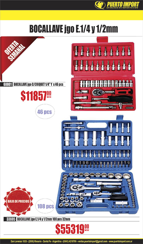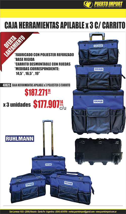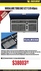![]() ![]() INSERTO C/ACCSESORIOS jgo 15 pcs RUHLMANN 21230 INSERTO M12 x 1 x 15 pcs RU43018 21255 INSERTO M 6 x 1 RU43021 21258 INSERTO M 7 x 1 RU43030 21260 INSERTO M10 x 1 RU43031 21256 INSERTO M10 x 1.25 RU43025 21261 INSERTO M10 x 1.5 RU43023 21257 INSERTO M12 x 1.25 RU43026 RUHLMAN![]() ![]() 40415 ACC.TORNOx 418 piezas RU8543 RUHLMANN![]() 14484 ANAFE ELECTRICO 1 HORNALLA c/reg y corte blanco 1000W GLOSS![]() 14445 ANAFE ELECTRICO 2 HORNALLAS c/reg y corte negro 2000W GLOSS![]() 33695 BOCALLAVE jgo E.1/4 y 1/2mm 108 pcs 32mm![]() ![]() 40420 BOMBA TRASVA. COMBUSTIBLE Y OTROS + INFLADOR RU12007 RUHLMAN![]() CABLES DE ARRANQUE P/BATERIA AUTO ROJO Y NEGRO 17042 1000 AMP![]() ![]() 40568 CALIBRE P/ROSCAS MM - SAE RU47100 RUHLMAN![]() CANDADO ACERO CROMADO ARO LARGO DOB.TRABA LLAVE COMP. 16693 30mm 16694 40mm 16695 50mm 16696 60mm ![]() 24505 CINTA EMPAQUE 48mm x 100m TRANSPARENTE AMARILLA BRACO![]() 28970 DESTORNILLADOR CONO x 16 pcs![]() ![]() 40302 DISCO MUELA PLANO MADERA 115mm RU15392 RUHLMANN![]() ![]() ELECTRODO PUNTA AZUL 6013 BRACO 11309 2 mm x 5 kg PUNTA AZUL 6013 BRACO11310 2.5 mm x 5 kg PUNTA AZUL 6013 BRACO11311 3.25 mm x 5 kg PUNTA AZUL 6013 BRACO![]() ![]() 40608 ESCUADRA MULTIFUNCION ACERO INOXIDABLE RU51053 RUHLMANN![]() ![]() 40440 EXTRACTOR DE POLEAS/ENGRANAJES/COJINETES x 10pz RU43166 RUHL![]() ![]() 40450 EXTRACTOR DE RODAM.DEZLIZABLE UNIV. x 13pz RU43159 RUHLMANN![]() ![]() 40583 EXTRACTOR DE ROTULAS CAMIONETA 4x4/4x2 10 pcs RU43133 RUHLMA![]() ![]() FRESADORA AVELLANADORA RUHLMANN 40630 8 x 8 x 2.8mm RU56556 40631 8 x 8 x 3.5mm RU56557 40632 8 x 8 x 4mm RU56558 40633 8 x 10 x 2.8mm RU56559 40634 8 x 10 x 3.5mm RU56560 40635 8 x 10 x 4.0mm RU56561 ![]() ![]() INSERTO RUHLMANN 21226 M 8 x 1 x 25 pcs RU43064 21270 M 8 x 1.25 x 25 pcs RU43054 21228 M10 x 1 x 25 pcs RU43055 21229 M10 x 1.25 x 25 pcs RU43056 21271 M10 x 1.5 x 25 pcs RU43057 21272 M11 x 1.5 x 25 pcs RU43067 21273 M12 x 1.25 x 15 pcs RU43058 21274 M12 x 1.50 x 15 pcs RU43059 21275 M12 x 1.75 x 15 pcs RU43060 21276 M14 x 1.25 x 5 pcs RU43061 21277 M14 x 1.50 x 5 pcs RU43072 21278 M16 x 1.50 x 5 pcs RU43040 ![]() LISTON C/CINTA LED LD ENCASTRABLE 35502 8W T5 400mm 35503 8W T5 600mm 35501 9W T8 600mm ![]() ![]() 40361 LLAVE DE EXTENSION 15" + 3 ADAPT RU43016 RUHLMANN![]() ![]() 40306 MANDRIL ACODADO 90¦ 10mm P/TALAD.C/MANILLAR RU12000 RUHLMANN![]() ![]() 10036 MECHA AC.RAP.IND JGO x 5 pcs 4/5/6/8/10 mm TOOLMAK![]() ![]() 40603 MECHA MULTIMATERIAL 4 CORTES jgox5 5-6-8-10-12 RU56009 RUHL![]() ![]() MECHA WIDIA SDS PLUS TOOLMAK 32692 8x210mm 32693 10x160mm 32694 10x210mm 32697 10x450mm 32695 12x210mm 32696 12x260mm ![]() ![]() 40312 PICO ACCOPLE GRASERA ENC 1/8 NPT RU13000 RUHLMANN![]() ![]() 40341 PINZA ALICATE CURVA NYLON P/MANGUERA x 3pcs RU43756 RUHLMAN![]() 9330 PINZA CRIMPIADORA TELEFONIA + PELACABLE![]() ![]() 40131 PINZA SACAABRAZADERAS RECTA RU37005 RUHLMANN![]() ![]() 40380 PROBADOR DE FUGAS DE RADIADOR x 33 pcs RU43757 RUHLMAN![]() ![]() RUEDA P/CORTACERAMICO LAPIZ T/RUBI RUHLMANN 40434 8mm RU14004 40435 10mm RU14005 ![]() ![]() 40428 SOGA REMOLQUE CABLE ACERO 8mm x 4m RU38160 RUHLMANN![]() 6939 TAPON TERMO AC.MACHO T/STANLEY PICO SEBADOR![]() TUBO LED PORTATIL RECARGABLE LD 15741 52cm | ![]() ![]() 40399 ACC.TORNO CEPILLOS INOX/BRONCE/NYLON 18 PCS RU8540 RUHLMANN![]() ![]() 40045 ACC.TORNO VASTAGO Y LIJAS BANDA x 102 pcs RU8533 RUHLMANN![]() ![]() 40314 ALARGUE AMOLADORA MANO 140mm M14 RU8561 RUHLMANN![]() 14486 ANAFE ELECTRICO 1 HORNALLA c/reg y corte negro 1000W GLOSS![]() ![]() BISELADOR C/TOPE FLOTANTE RUHLMAN 40645 8 x 8 x 3 RU56550 40646 8 x 8 x 3.5 RU56551 40647 8 x 8 x 4 RU56552 40648 8 x 10 x 3 RU56553 40649 8 x 10 x 3.5 RU56554 40650 8 x 10 x 4 RU56555 ![]() ![]() BUSCAPOLO TOOLMAK 14450 CHICO 14451 GRANDE ![]() ![]() 15250 CALIBRE FIBRA 150mm TOOLMARK![]() CANDADO ACERO CROMADO ANTIBANDALICO LLAVE COMP. 16673 40mm 16679 50mm 16680 60mm 16681 70mm ![]() ![]() CINTA ALUMINIO 4.8 x 0.03mm BRACO 24508 50 m ![]() ![]() 10249 CUTTER H/TRAPEZOIDAL PLEGABLE TOOLMAK![]() ![]() 40008 DISCO DIAMANT.PORCELANATO SUPER TRF TURBO 4 1/2" RU15359 RUH![]() ![]() 40444 EJE FLEXIBLE 1/4" x 300mm C/ACOPLE RAP. MAGNETICO RU6958 RUL![]() ![]() ESCOFINA MADERA P/AMOLADORA RUHLMANN 40602 M14 x 25mm RU15376 ![]() ![]() 40320 EXTRACTOR DE POLEAS DE AMORTIGUADOR KIT RU43165 RUHLMANN![]() ![]() EXTRACTOR DE RODAM. T/CEPO RUHLMANN 40330 30 x 50 RU16035 40331 35 x 75 RU16036 ![]() ![]() 40618 EXTRACTOR DE ROSCAS ROTAS 1/2-3/4" RU16014 RUHLMANN![]() ![]() 7184 FILTRO P/SOPAPA DE BACHA acero inox. x 3 pcs GIMP![]() ![]() GUANTE MULTIP. MULTIFLEX WARM LATEX FOAM DV9 P/FRIO 21732 T10 STE21730 T8 STEEL21731 T9 STEE![]() ![]() 40205 KIT ADAPT. AMOLADORA 4 1/2" A MULTICORTE RU25503 RUHLMANN.![]() ![]() 40310 LINTERNA INSPECCION RECARG 3W USB 12 hs PLEGAB. RU26700 RUHL![]() ![]() 40412 LLAVE CRIQUET 1/2" CURVA c/expulsor RU30850 RUHLMANN![]() ![]() 40360 LLAVE POLI V 8-10/11-13/14-15/16-17/18-19 5pcs RU43015 RUHLM![]() ![]() 10037 MECHA AC.RAP.IND JGO x 13 pcs 1.5 a 6.5 mm TOOLMAK![]() ![]() 40585 MECHA DIAMANT.COPA P/AMOLADORA 30mm RU58028 RUHLMANN![]() ![]() MECHA WIDIA TOOLMAK 29195 5mm 29205 8 x 400mm 29206 10 x 400mm 29198 10mm 29207 12 x 400mm 29199 12mm ![]() ![]() 40224 MINI EXTRACTOR LIMPIAPARABRIZAS Y COJINETE RU16047 RUHLMANN![]() 14408 PICO INFLADOR DE NEUMATICOS P/COMPRESOR GOMERIA![]() ![]() 40340 PINZA ALICATE RECTO NYLON P/MANGUERA x 3pcs RU43755 RUHLMAN![]() ![]() 40130 PINZA SACAABRAZADERAS FLEXIBLE RU37001 RUHLMANN![]() ![]() 40636 PLANTILLA COPIADORA ROSCAS/TORNILLOS/TUERCAS RU37102 RUHLMAN![]() ![]() 14939 RODILLERA GOMA ANTIDESLIZANDE PROFESIONAL x 2 TOOLMAK![]() ![]() 40639 SERRUCHO JAPONES DOBLE FILO 270mm RU49101 RUHLMANN![]() ![]() 40343 SOPORTE MAGNETICO HERRAM.50cm RU21020 RUHLMANN![]() ![]() TORQUIMETRO DE SAFE RUHLMANN 18794 3/4 RU40558 | ![]() ![]() 40195 ACC.TORNO DISCO C/VASTAGO DIAMANTADO TRF 40mm RU8535 RUHLMA![]() ![]() 40416 ACC.TORNOx 306 piezas RU8542 RUHLMANN![]() ![]() ANAFE 2 HORNALL
