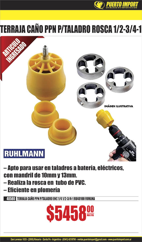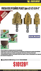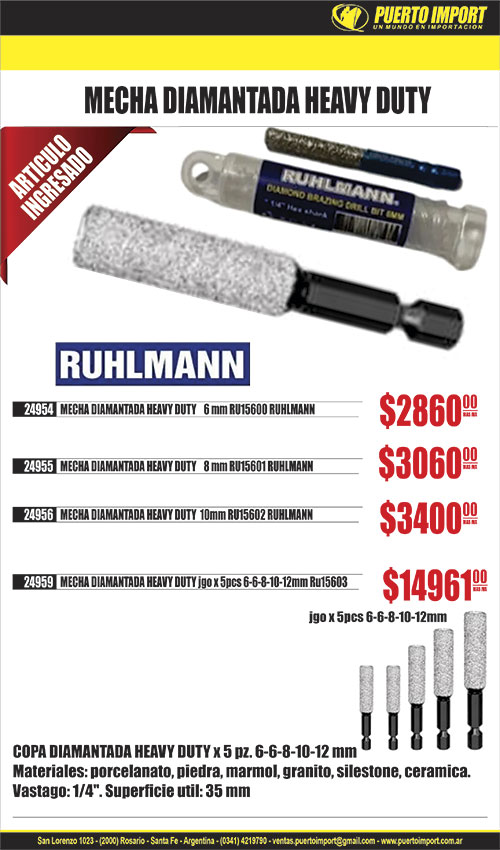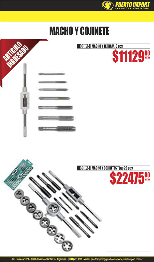 ![]() ![]() INSERTO C/ACCSESORIOS jgo 15 pcs RUHLMANN 21230 INSERTO M12 x 1 x 15 pcs RU43018 21255 INSERTO M 6 x 1 RU43021 21258 INSERTO M 7 x 1 RU43030 21260 INSERTO M10 x 1 RU43031 21256 INSERTO M10 x 1.25 RU43025 21261 INSERTO M10 x 1.5 RU43023 21257 INSERTO M12 x 1.25 RU43026 RUHLMAN![]() ![]() 40415 ACC.TORNOx 418 piezas RU8543 RUHLMANN![]() 14443 ANAFE ELECTRICO 2 HORNALLAS c/reg y corte blanco 2000W GLOSS![]() ![]() 40400 BOCALLAVE ALLEN jgo E.1/2 A/IMPACT.75mm x 10pc 5a19mmRU24009![]() ![]() 40342 BOCALLAVE P/SACAR AMORTIGUADOR Y CARTER VW RU43151 RUHLMAN![]() ![]() CABEZAL ANGULAR 1/4" ADAPT 2 en 1 C/MOVIMIENTO 40677 90cmRU6959![]() ![]() 40568 CALIBRE P/ROSCAS MM - SAE RU47100 RUHLMAN![]() CANDADO ACERO CROMADO ARO LARGO DOB.TRABA LLAVE COMP. 16693 30mm 16694 40mm 16695 50mm 16696 60mm ![]() ![]() 10249 CUTTER H/TRAPEZOIDAL PLEGABLE c/repuestos TOOLMAK![]() ![]() 40008 DISCO DIAMANT.PORCELANATO SUPER TRF TURBO 4 1/2" RU15359 RUH![]() ![]() 40444 EJE FLEXIBLE 1/4" x 300mm C/ACOPLE RAP. MAGNETICO RU6958 RUL![]() ![]() ESCOFINA MADERA P/AMOLADORA RUHLMANN 40602 M14 x 25mm RU15376 ![]() ![]() 40320 EXTRACTOR DE POLEAS DE AMORTIGUADOR KIT RU43165 RUHLMANN![]() ![]() EXTRACTOR DE RODAM. T/CEPO RUHLMANN 40330 30 x 50 RU16035 ![]() ![]() 40583 EXTRACTOR DE ROTULAS CAMIONETA 4x4/4x2 10 pcs RU43133 RUHLMA![]() ![]() FRESADORA AVELLANADORA RUHLMANN 40630 8 x 8 x 2.8mm RU56556 40631 8 x 8 x 3.5mm RU56557 40632 8 x 8 x 4mm RU56558 40633 8 x 10 x 2.8mm RU56559 40634 8 x 10 x 3.5mm RU56560 40635 8 x 10 x 4.0mm RU56561 ![]() ![]() 40604 GUIA PARALELA P/SIERRA CIRCULAR/CEPILLO /FRESADORA RU8015 RU![]() ![]() 40168 KIT REMOVEDOR TERMINALES CABLE AUTO x 3 pcs RU43111 RUHLAMN![]() LISTON C/CINTA LED LD ENCASTRABLE 35502 8W T5 400mm 35503 8W T5 600mm 35501 9W T8 600mm ![]() ![]() 40361 LLAVE DE EXTENSION 15" + 3 ADAPT RU43016 RUHLMANN![]() ![]() 40306 MANDRIL ACODADO 90¦ 10mm P/TALAD.C/MANILLAR RU12000 RUHLMANN![]() ![]() 40212 MECHA COPA TITANIO BIMETAL.JGO.x 5 pcs RU60041 UHLMANN![]() ![]() 10053 MECHA WIDIA jgo x 5 pcs 4/5/6/8/10 mm estuche TOOLMAK![]() ![]() 40224 MINI EXTRACTOR LIMPIAPARABRIZAS Y COJINETE RU16047 RUHLMANN![]() 14408 PICO INFLADOR DE NEUMATICOS P/COMPRESOR GOMERIA![]() ![]() 40341 PINZA ALICATE CURVA NYLON P/MANGUERA x 3pcs RU43756 RUHLMAN![]() ![]() 40142 PINZA P/CABLE RESORTE FRENO RU44012 RUHLMANN![]() ![]() 40607 PINZA SACASEGUER abrir y cerrar 240mm jgo 4 pz RU1020 RUHLM![]() ![]() PUNTA ATORN.1/4 PHILIPS PH2 MAG.DOBLE x10u TOOLMAK 20413 50mm ![]() ![]() 40620 SEPARADOR SUSPENSION UNIVERSAL RU3162 RUHLMAN![]() ![]() 40304 SOPORTE 45¬ REGULABLE P/AMOLADORA MANO RU21021 RUHLMANN![]() ![]() 40382 TERRAJA SACA OVULOS VALVULA 4 FUNCIONES RU43758 RUHLAMN | ![]() ![]() 40399 ACC.TORNO CEPILLOS INOX/BRONCE/NYLON 18 PCS RU8540 RUHLMANN![]() ![]() 40045 ACC.TORNO VASTAGO Y LIJAS BANDA x 102 pcs RU8533 RUHLMANN![]() ![]() 40314 ALARGUE AMOLADORA MANO 140mm M14 RU8561 RUHLMANN![]() 14445 ANAFE ELECTRICO 2 HORNALLAS c/reg y corte negro 2000W GLOSS![]() 33695 BOCALLAVE jgo E.1/4 y 1/2mm 108 pcs 32mm![]() ![]() BUSCAPOLO TOOLMAK 14451 GRANDE ![]() ![]() 15250 CALIBRE FIBRA 150mm TOOLMARK![]() CANDADO ACERO CROMADO ANTIBANDALICO LLAVE COMP. 16673 40mm 16679 50mm 16680 60mm 16681 70mm ![]() 24505 CINTA EMPAQUE 48mm x 100m TRANSPARENTE AMARILLA BRACO![]() 28970 DESTORNILLADOR CONO x 16 pcs![]() ![]() 40302 DISCO MUELA PLANO MADERA 115mm RU15392 RUHLMANN![]() ![]() ELECTRODO PUNTA AZUL 6013 BRACO 11309 2 mm x 5 kg PUNTA AZUL 6013 BRACO11310 2.5 mm x 5 kg PUNTA AZUL 6013 BRACO11311 3.25 mm x 5 kg PUNTA AZUL 6013 BRACO![]() ![]() 40608 ESCUADRA MULTIFUNCION ACERO INOXIDABLE RU51053 RUHLMANN![]() ![]() 40440 EXTRACTOR DE POLEAS/ENGRANAJES/COJINETES x 10pz RU43166 RUHL![]() ![]() 40450 EXTRACTOR DE RODAM.DEZLIZABLE UNIV. x 13pz RU43159 RUHLMANN![]() ![]() 40425 FILTRO COMPRESOR UNIVERSAL CARCAZA METALICA RU45007 RUHLMANN![]() ![]() GRAMPA PRENSACABLE 4165 1/8" 3mm BRACO4166 3/16" 4mm BRACO4167 1/4" 6mm BRACO4168 5/16" 8mm BRACO4169 3/8" 10mm BRACO![]() ![]() INSERTO RUHLMANN 21226 M 8 x 1 x 25 pcs RU43064 21270 M 8 x 1.25 x 25 pcs RU43054 21228 M10 x 1 x 25 pcs RU43055 21229 M10 x 1.25 x 25 pcs RU43056 21271 M10 x 1.5 x 25 pcs RU43057 21272 M11 x 1.5 x 25 pcs RU43067 21273 M12 x 1.25 x 15 pcs RU43058 21274 M12 x 1.50 x 15 pcs RU43059 21275 M12 x 1.75 x 15 pcs RU43060 21276 M14 x 1.25 x 5 pcs RU43061 21277 M14 x 1.50 x 5 pcs RU43072 21278 M16 x 1.50 x 5 pcs RU43040 ![]() ![]() LLAVE CRIQUET c/expulsor RUHLMANN 40404 1/4" RU30851 40410 3/8" RU30852 40411 1/2" RU30853 ![]() ![]() 40615 LLAVE PIPA jgo 6pz 8-9/10-11/12-13/14-15/16-17/18-19 RU43001![]() ![]() 26596 MARTILLO CAB.DOBLE PVC - GOMA MANGO FIBRA TOOLMAK![]() ![]() 40585 MECHA DIAMANT.COPA P/AMOLADORA 30mm RU58028 RUHLMANN![]() ![]() MECHA WIDIA TOOLMAK 29195 5mm 29205 8 x 400mm 29206 10 x 400mm 29198 10mm 29207 12 x 400mm 29199 12mm ![]() ![]() 40430 NIVEL PLEGABLE 5 LADOS MAGNETICO 4 BURBUJAS RU55050 RUHLMANN![]() ![]() PICO/TUBO CONTACTO MIG RU57502 RUHLMANN 21252 MIG T 15 x 1.2 RU57504 RUHLMANN40344 T15 x 0.8 M6 SOLDADORA MIG RU57502 RUHLMA![]() 9330 PINZA CRIMPIADORA TELEFONIA + PELACABLE![]() ![]() 40131 PINZA SACAABRAZADERAS RECTA RU37005 RUHLMANN![]() ![]() 40380 PROBADOR DE FUGAS DE RADIADOR x 33 pcs RU43757 RUHLMAN![]() ![]() RUEDA P/CORTACERAMICO LAPIZ T/RUBI RUHLMANN 40434 8mm RU14004 40435 10mm RU14005 ![]() ![]() 40428 SOGA REMOLQUE CABLE ACERO 8mm x 4m RU38160 RUHLMANN![]() 6939 TAPON TERMO AC.MACHO T/STANLEY PICO SEBADOR | ![]() ![]() 40195 ACC.TORNO DISCO C/VASTAGO DIAMANTADO TRF 40mm RU8535 RUHLMA![]() ![]() 40416 ACC.TORNOx 306 piezas RU8542 RUHLMANN![]() ![]() ANAFE 2 HORNALLAS BLANCO ABRASOL 24298 GAS ENVASADO 24296 GAS NATURAL ![]() ![]() BISELADOR C/TOPE FLOTANTE RUHLMAN 40645 8 x 8 x 3 RU56550 40646 8 x 8 x 3.5 RU56551 40647 8 x 8 x 4 RU56552 40648 8 x 10 x 3 RU56553 40649 8 x 10 x 3.5 RU56554 40650 8 x 10 x 4 RU56555 ![]() ![]() 40420 BOMBA TRASVA. COMBUSTIBLE Y OTROS + INFLADOR RU12007 RUHLMAN![]() CABLES DE ARRAN