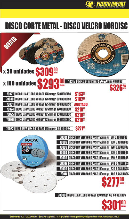 ![]() BOQUILLA ATORN. MAG.CrV. CONER 5914 1/4"x65mm ![]() ![]() BRAZO LLUVIA 90° acero inox. MOZART 27692 50cm 9072 ![]() 16603 CANDADO BCEADO. 20mm TRICIRKAL![]() ![]() CANILLA ESFER.METAL C/MANGA MOZART 16194 3/4" 9453 ![]() 20716 CHALECO REFLECTIVO REJILLA AMARILLO XXL![]() 4219 CHOCLA GRANDE C/TIZA Y NIVEL![]() CINTA METRICA AGRIM.TIPO REEL FIBRA 17279 20m 17280 30m 17282 100m ![]() ![]() 6103 CORTAVIDRIO C/ACEITE T/SILBERTSNICH TOOLMAK![]() 25455 DEST.INTERC.PHILIPS/PLANO REG.REF.ERG PH2x150mm![]() ![]() DISCO LIJA VELCRO NO PAST 125mm RUHLMANN 40024 gr 240 RU91104 40025 gr 320 RU91105 ![]() FAJA LUMBAR 4 BALLENAS 25463 T5 XXXL![]() 76 FICHA ELEC.MACHO C/NEUTRO 10A AXIAL NEGRA C/PRENSACABLE![]() GRAMPA ENGRAMP. MANUAL LIV 18446 11.3x0.7x 4mm x 100014770 11.3x0.7x14mm x 1000![]() ![]() 27938 GRIF.DUCHA MONO.ESCALA NEGRA C/TRANSF/DUCHAD GIMP![]() ![]() 27886 GRIF.LAVA.MONO.ABS BOGOTA CIL.V/PLANO NEGRA 7164 MOZART![]() ![]() 27854 GRIF.LAVA.MONO.ABS PHOENIX CIL.V/PLANO BLANCA 7144 MOZART![]() ![]() 28110 GRIF.LAVA.MONO.FOX NEGRA GIMP![]() ![]() 27899 GRIF.LAVA.MONO.MADRID CILIN.V/PLANO NEGRA ALTA 9239 MOZART![]() ![]() 28012 GRIF.LAVA.MONO.VECTRA GIMP![]() ![]() 28105 GRIF.MESA.MONO.FENIX NEGRA ROCIADOR EXTRAIBLE GIMP![]() ![]() 28112 GRIF.MESA/LAVA.MONO.NIAGARA PICO PLANO NEGRA GIMP![]() ![]() 18542 GRIF.PARED UN AGUA METAL BRAZO MOVIL PICO CISNE 9019 MOZART![]() ![]() HOJA SIERRA CA.BANCO MAD.x 12 BRACO 4760 mod 2 0.28x0.82 4761 mod 4 0.32x1.02 4762 mod 6 0.36x1.20 4763 mod 8 0.40x1.36 4764 mod 10 0.44x1.50 ![]() ![]() 25137 LENTE ARGON FUV/ANRAYA CLARO LIBUS![]() ![]() 24242 LENTE DISCOVERY FLEX ANTIEMP/FUV/ANRAYA CLARO STEELPRO![]() ![]() 24266 LENTE GRAVITY FUV/ANRAYA CLARO STEELPRO![]() 24290 LENTE PATILLA REGULABLE CLARO![]() ![]() 24238 LENTE RUNER ANTIEMP/FUV/ANRAYA CLARO STEELPRO![]() ![]() 24276 LENTE SPY FUV/ANRAYA OSCURO STEELPRO![]() ![]() LIJA MADERA KLINGSPOR 24415 36 PL28C 24416 40 PL28C 24417 60 PL28C 24418 80 PL28C 24419 100 PL28C 24420 120 PL28C 24421 150 PL28C 24422 180 PL28C 24423 220 PL28C 24424 240 PL28C ![]() ![]() LIJA TELA ESMERIL KLINGSPOR KL2100 40 KL371X 24444 50 KL371X 24445 60 KL371X 24446 80 KL371X 24447 100 KL371X 24448 120 KL371X 24449 150 KL371X 24450 180 KL371X 24451 220 KL371X 24452 240 KL371X 24453 280 KL371X 24454 320 KL371X 24455 360 KL371X 24456 400 KL371X ![]() MECHA ESCALONADA TITANIO 32591 HSS 4-12mm32592 HSS 4-20mm![]() MENSULA CHAPA NERVIO GRIS 12219 125 x 150mm ![]() MEZCLADOR PINTURA 5297 8 x 40 cm![]() PASADOR C/PORTACAN.ZINC 1314 (10x100)![]() PINTURA ASFALTICA SEC. RAPIDO MEGAFLEX 8505 1 lt ![]() 652 PISTOLA CARTUCHO SILICONA AZUL![]() 30628 PLAFON LED CUADRADO 9w 15cm EMBUTIR LC![]() PROLONGACION ELEC.4 TO.MULTI.C/LLAVE T/EXULTT BLANCA 26290 3m ![]() ![]() PUNTA ATORN.1/4 PHILIPS PH2 S2 RUHLMANN 5839 75mm RU34700 ![]() ![]() 10090 PUNTA DE PRUEBA AC/DC 6/12/24/50/110/220/380 VOLT RUHLMANN![]() 3675 RESISTENCIA CALEFON FOCO COBREADA![]() 14834 RESISTENCIA CALEFON PULMON ALUMINIO![]() 3676 RESISTENCIA CALEFON PULMON COBREADA![]() RODILLO POLIESTER FORRADO MINI 1599 5cm1600 8cm1601 11cm![]() 26773 SPOT SOLAR EXT.158 LED LD 50W CON SENSOR MOVIMIENTO Y LCD![]() TEJIDO MOSQUITERO ALUMINIO x 25m 24975 0,80m | ![]() BOTA GOMA IND. CAMPERA NEGRA TECNOBOOT 27050 T 38 27051 T 39 27052 T 40 27054 T 42 27055 T 43 27056 T 44/45 ![]() 14680 CALIBRE DIGITAL PLASTICO 150mm![]() ![]() CANILLA BCE.C/MANGA 11780 1/2" GIMP![]() ![]() CASCO SEGURIDAD C/ARNES MILENIUM LIBUS 16426 AMARILLO ![]() 19736 CHOCLA GRANDE![]() CINTA METRICA AGRIM.CAJA CERRADA FIBRA 17276 20m 17277 30m 17290 100m ![]() 582 CONCERTINA PERIMETRAL 30cm simple cruzada 40vuelta cubre 10![]() 6137 CUTTER HOJA CHICA CHAPA REF![]() ![]() DISCO FLAP 4 1/2" ZIRC. KLINGSPOR 24403 36 CONV. SMT624 SUPRA 24404 40 CONV. SMT624 SUPRA 24405 50 CONV. SMT624 SUPRA 25228 120 CONV. SMT325 EXTRA 24408 120 CONV. SMT624 SUPRA 25232 120 PLANO SMT325 EXTRA 24115 120 PLANO SMT618 EXTRA 24542 120 PLANO SMT625 SUPRA ![]() ![]() DISCO LIJA VELCRO OX.AL.125mm RUHLMANN 25932 gr 40 25933 gr 60 ![]() 26483 FICHA ELEC.MACHO C/NEUTRO 10A AXIAL NEGRA![]() 11988 FUELLE CONEC. INODORO A MOCHILA CORTO 2"![]() ![]() 29881 GRIF.DUCHA EXT.MONO.5 PIEZAS C/TRANSF/DUCHADOR C/GOLPE GIMP![]() ![]() 27858 GRIF.LAVA.MONO.ABS BOGOTA CIL.V/PLANO BLANCA 9374 MOZART![]() ![]() 29895 GRIF.LAVA.MONO.ABS BOMFIO CIL.V/PLANO BLANCA GIMP![]() ![]() 28119 GRIF.LAVA.MONO.CILOPE CILINDRO V/PLANO ALTA GIMP![]() ![]() 27903 GRIF.LAVA.MONO.MADRID CILIN.V/PALITO ACERO ALTA 9339 MOZART![]() ![]() 28162 GRIF.LAVA.MONO.PIPERS CROMADA GIMP![]() ![]() 28108 GRIF.MESA.MONO.BRONX C/PUENTE Y RESORTE NEGRA GIMP![]() ![]() GRIF.MESA.MONO.MOURA BRA.FLEXIBLE 28016 AMARILLA GIMP![]() ![]() 28111 GRIF.PARED MONO.BULL NEGRA BRA.FLEXIBLE CONO GIMP![]() 13790 GUANTE PU NYLON TEJIDO NEGRO T10![]() ![]() 10035 LAPIZ PUNTA DE WIDIA TOOLMAK![]() ![]() 24286 LENTE DESERT ANTIEMP/FUV/ANRAYA ANGUL. CLARO STEELPRO![]() ![]() 28027 LENTE ECOLINE FUV/ANRAYA OSCURO LIBUS![]() ![]() 24338 LENTE OMEGA ANTIEMP/FUV/ANRAYA P/OPTICO CLARO STEELPRO![]() ![]() 24241 LENTE PATROL ANTIEMP/FUV/ANRAYA CLARO STEELPRO![]() ![]() 24264 LENTE SPY FUV/ANRAYA CLARO STEELPRO![]() ![]() LIJA AL AGUA KLINGSPOR KL278629 60 PS8CKL255628 80 PS8CKL255629 100 PS8CKL255630 120 PS8CKL255631 150 PS8CKL253937 180 PS8AKL253938 220 PS8AKL255996 240 PS8AKL255997 280 PS8AKL253939 320 PS8AKL255632 360 PS8AKL253940 400 PS8AKL255998 500 PS8AKL253941 600 PS8AKL253942 800 PS8AKL253943 1000 PS8AKL253944 1200 PS8AKL255633 1500 PS8AKL269344 2000 PS8A![]() 28556 LINTERNA MINERO LED 3 AAA ON/OFF/INTERMITENTE![]() 32594 MANDRIL 13mm 20UNF llave de mandril![]() 32590 MECHA ESCALONADA TITANIO HSS jgox3 4-12/20/32mm![]() 820 MECHA WIDIA jgox5 PCS 4-5-6-8-10![]() MENSULA P/SPLIT x 2 17449 hasta 3000 frig. 1,5mm 42cm 17450 hasta 3000 frig. 2mm 42cm 17452 hasta 4500 frig. 2mm 47cm 17453 hasta 7500 frig. 2mm 60cm ![]() ![]() PINCEL CERDA BLANCA UNIVERSAL BRACO 29800 N° 7 - 3/4" 29802 N° 15 - 1 1/2" 29803 N° 20 - 2" 29804 